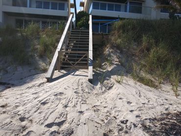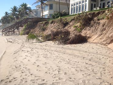 A severely eroded beachfront property, has a new seawall installed, and a replenished Dune slope is added.